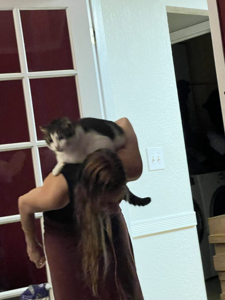 In other news, Achilles is still jumping on people’s backs. It’s a big habit now, a very cute one.