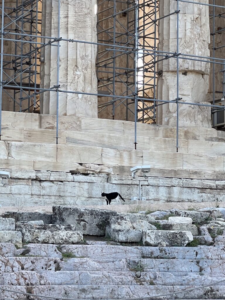Happy Friday! It is still sunny here — a great tragedy. Not too much has happened this week. Paris and Achilles have been fighting quite violently (nominative determinism, alas), and Mom has emailed someone to finally get them neutered. A photo from Greece has miraculously uploaded; let’s hope it sticks!! It’s one of my favorite pictures: a cat in front of the Parthenon. It is so small and the ruin is so big; it is so young and the ruin is so old. It’s also super cute and I love it so much.