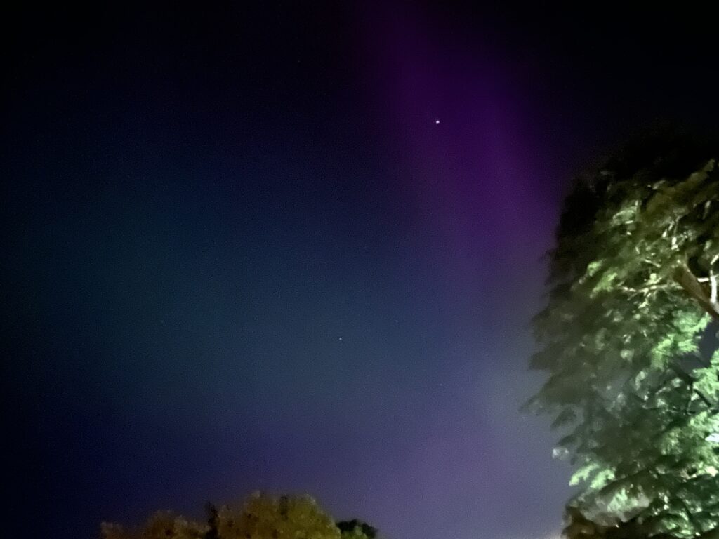 Did you see the northern lights last week? I didn’t hear about them until after I had written you. Mom saw them very clearly and I could see them well through my phone. I hope it wasn’t too cloudy, as it often is back home. Here are a few pictures: