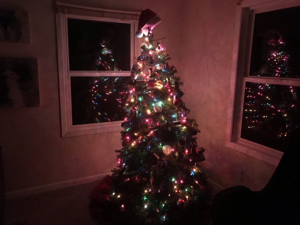 Happy almost Christmas! I can’t believe it’s so soon. We decorated the Christmas tree last Tuesday. You probably have by now, are you? Is mom still using the plastic tree? What ornaments do you use? Here’s a picture of the Christmas tree: